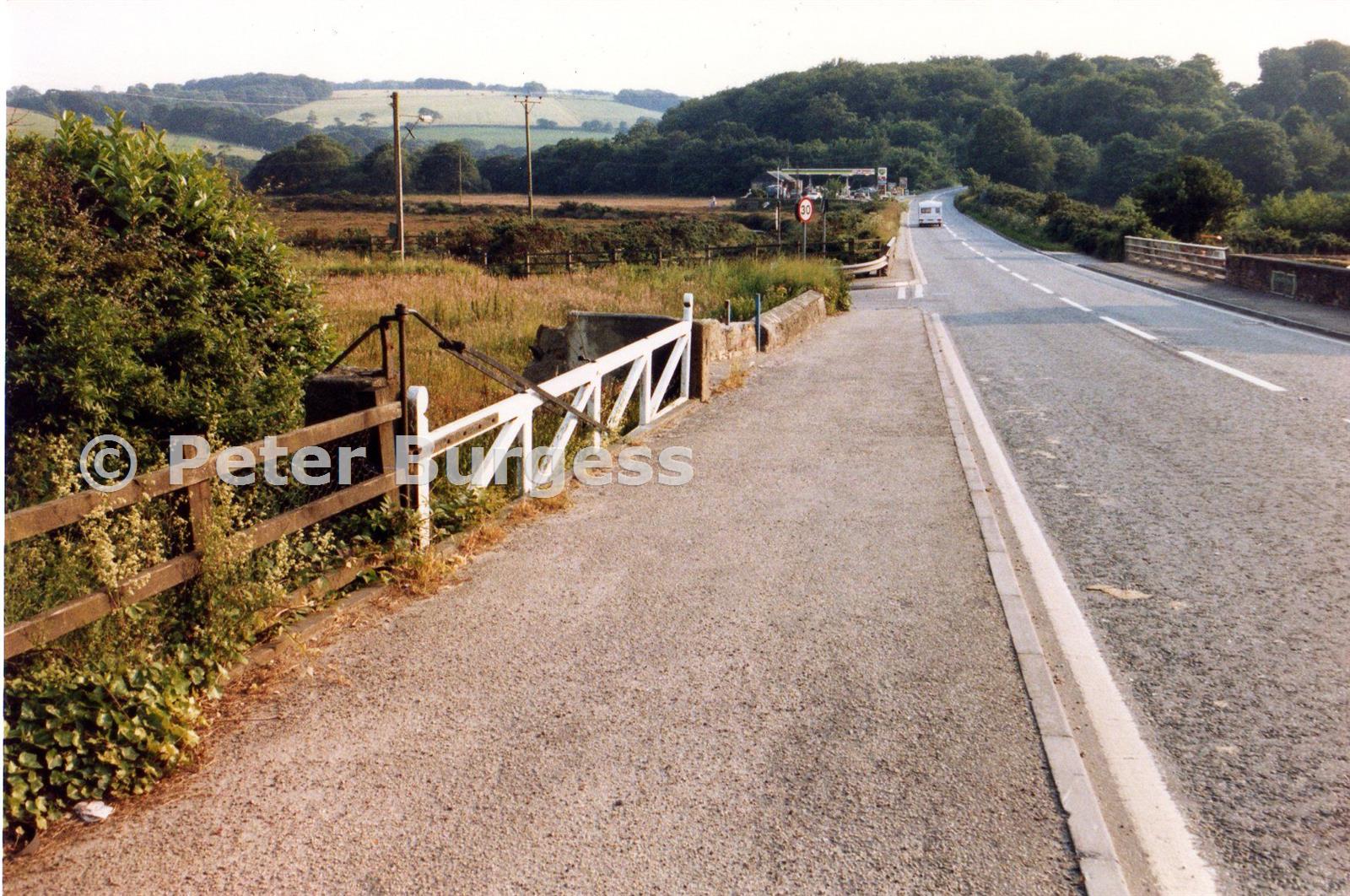 Where the line crosses the A39, this level crossing gate survived in 1987, obviously cared for.