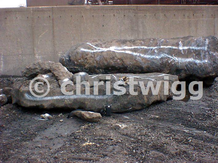 This is the lump of iron that remained in the hearth when the furnace was shut down, i assume they cut it out.