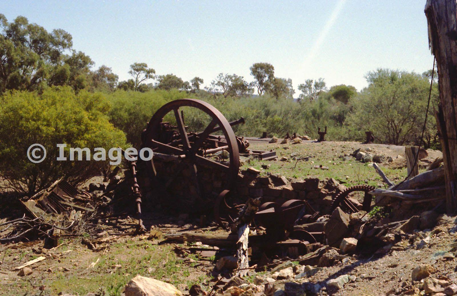 Flywheel and remains of steam engine ca. 1982.