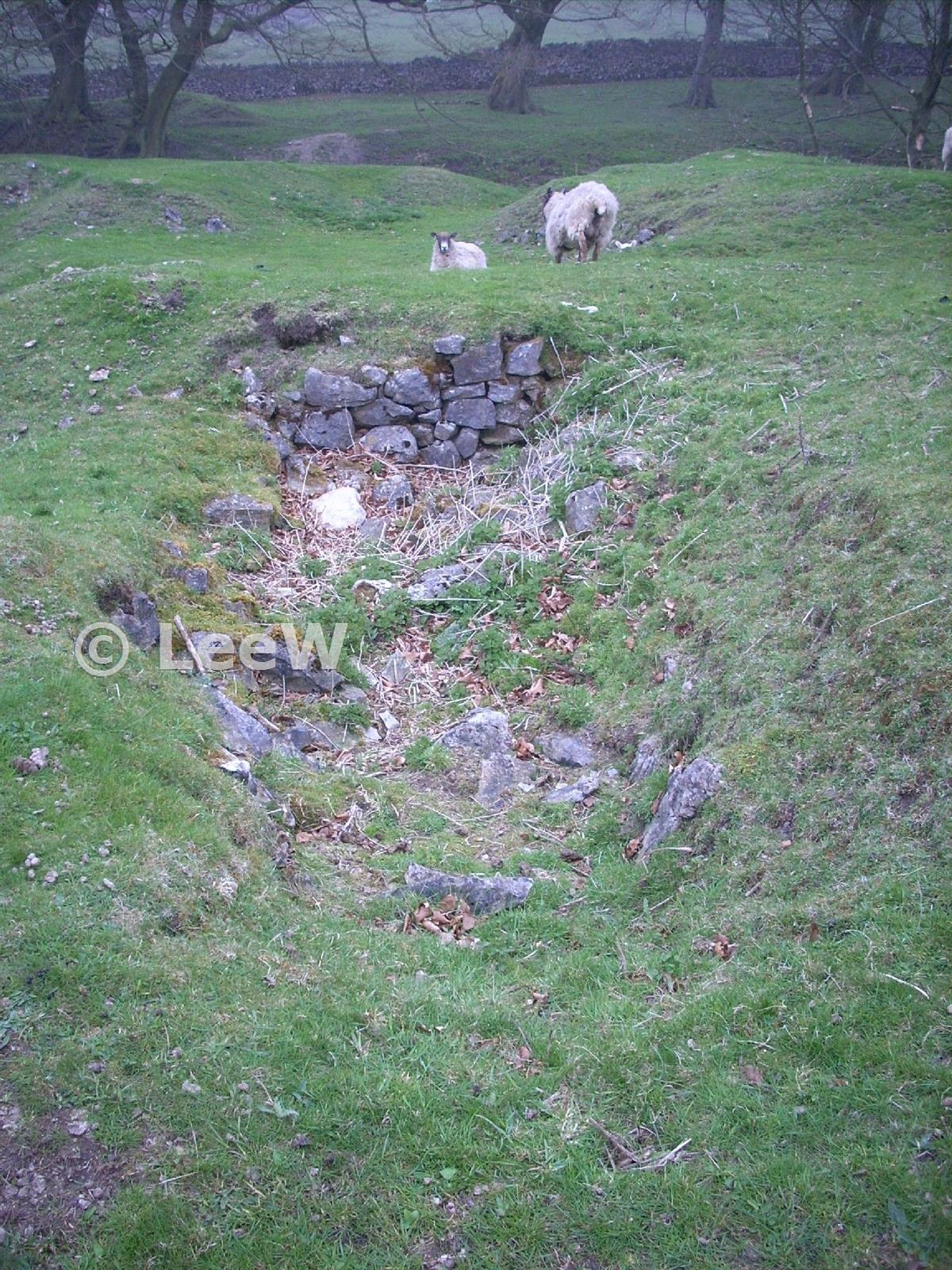 Uncertain what (if anything) these remains are for, there appears to be some retaining wall now part of track and a rectangular trench (16 April 2009)