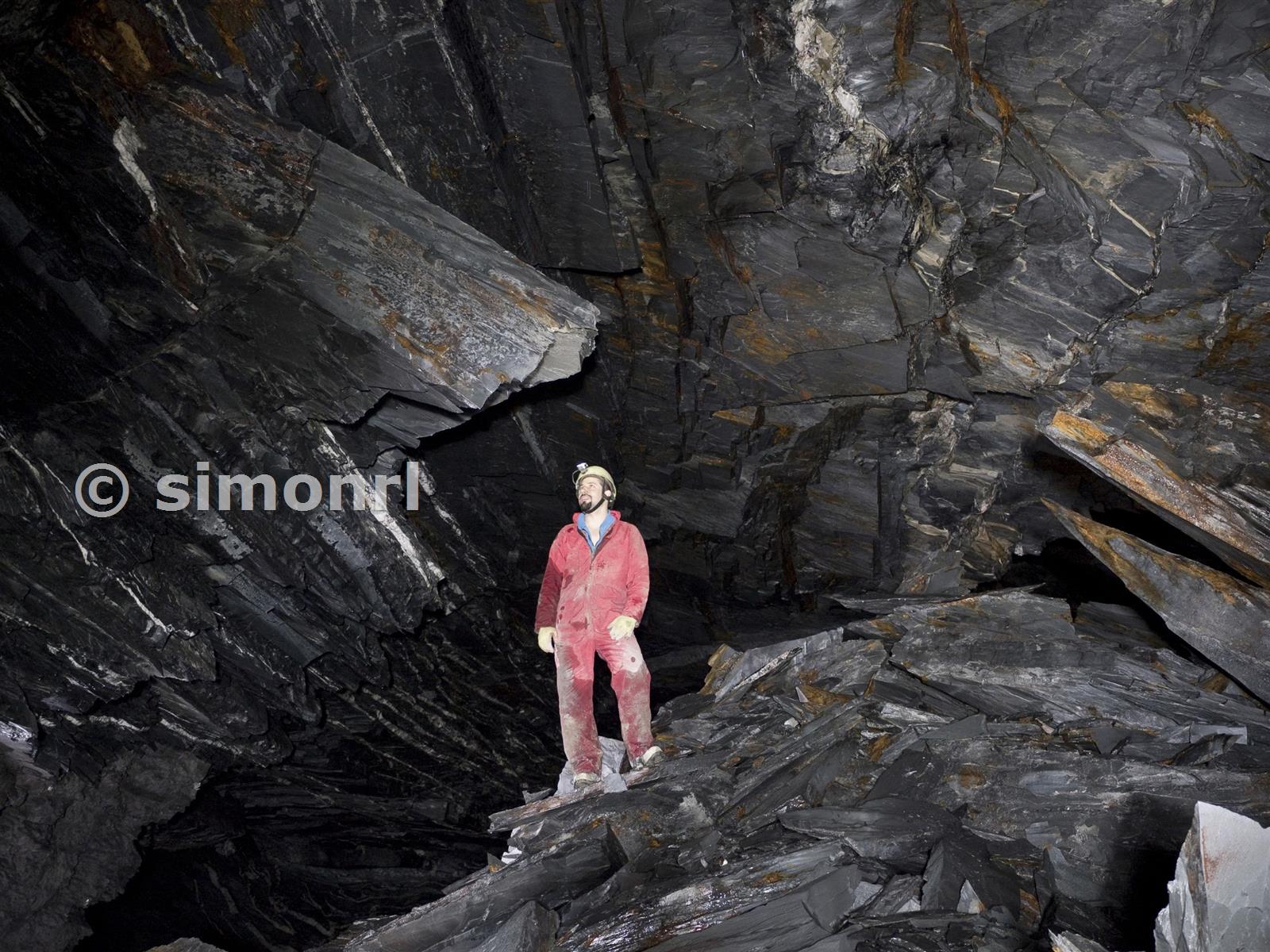 Jones the slate around the area of the chamber wall between chambers K and L, floor 4. Rhosydd Slate Mine February 2011