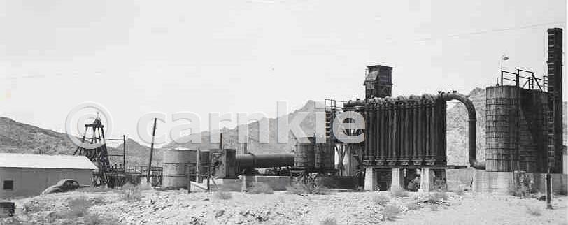Rico Mercury Mine, circa 1930, Northern Avenue at Dreamy Draw. State Route 51 now covers the mine remains. This view is of the furnace plant and machine shop, with the headframe in the distance.