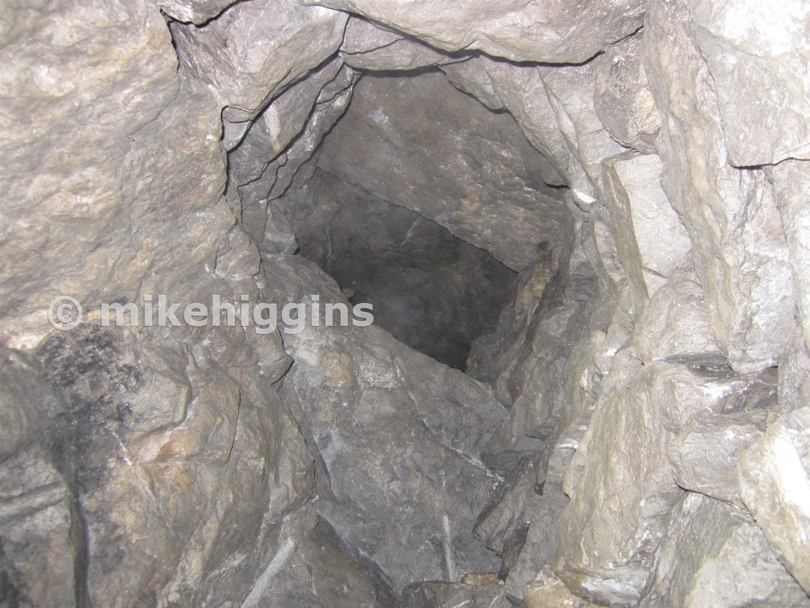 Looking up rise near entrance connecting to stope.