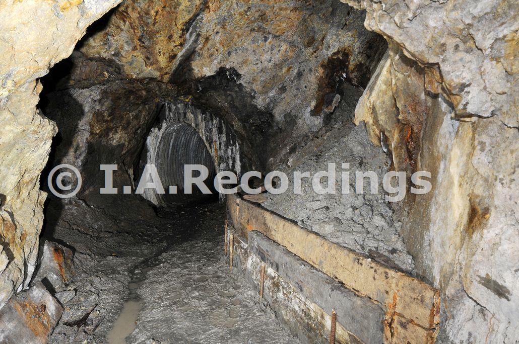 Inbye end of tube T2 (looking outbye). Corrugated iron tube surrounded be concrete, built during the 1990s safety works it protects visitors from a over-head stope.
