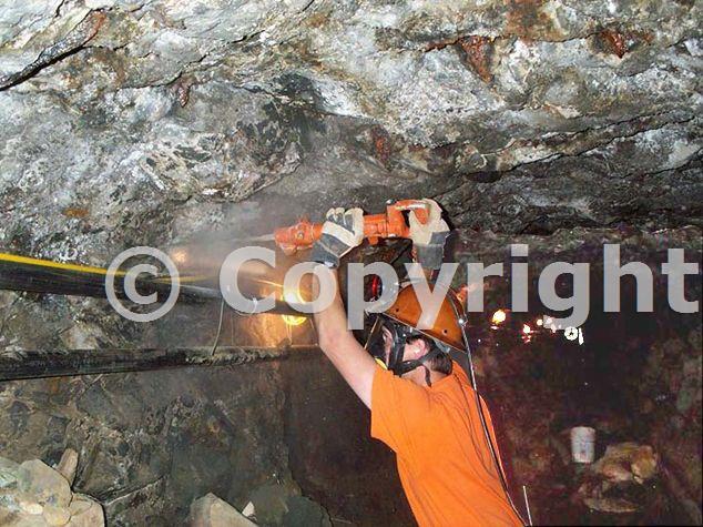 Rock drills, picks, and shovels are used to get at the mercury-contaminated sediments inside the tunnel. In spite of ventilation, high mercury vapor concentrations require that respirators be used.