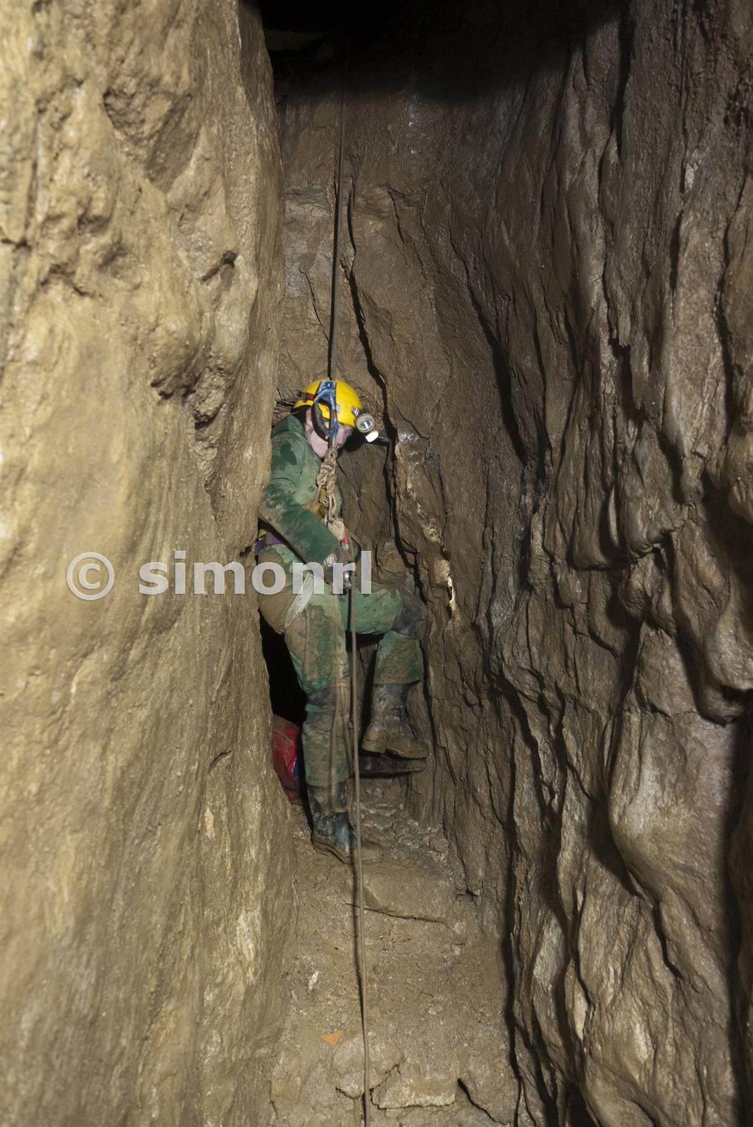 Rockchick preparing to swing out from the 230 foot level back into the engine shaft. Snake Lead Mine May 2011