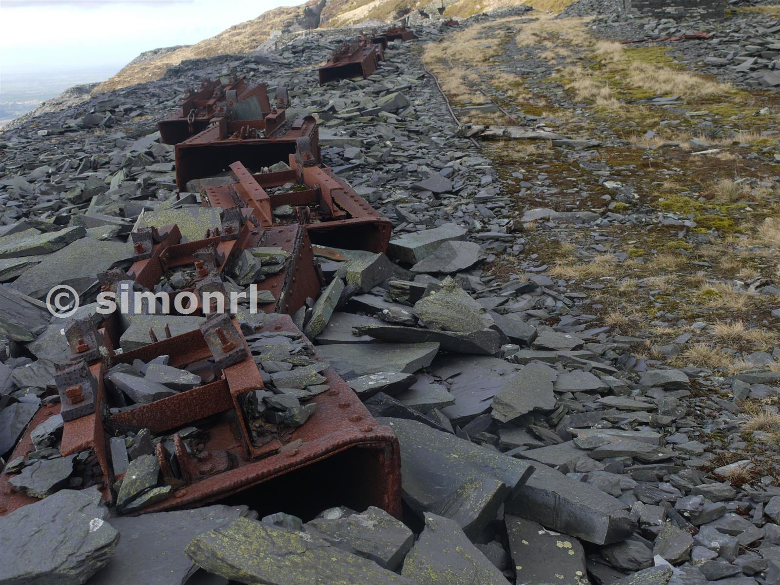 A line of rubbish wagons Dinorwic slate quarry February 2011