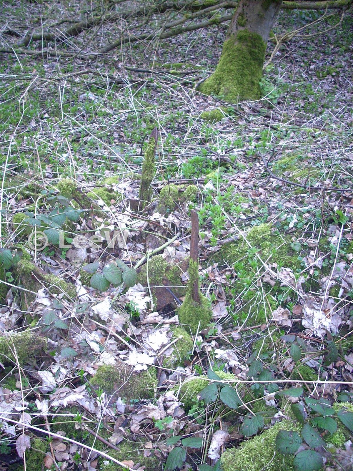 These metal stakes are located in an area of rubble which is a possible shaft site. The staked look like small spades, however may have been part a shaft fence?