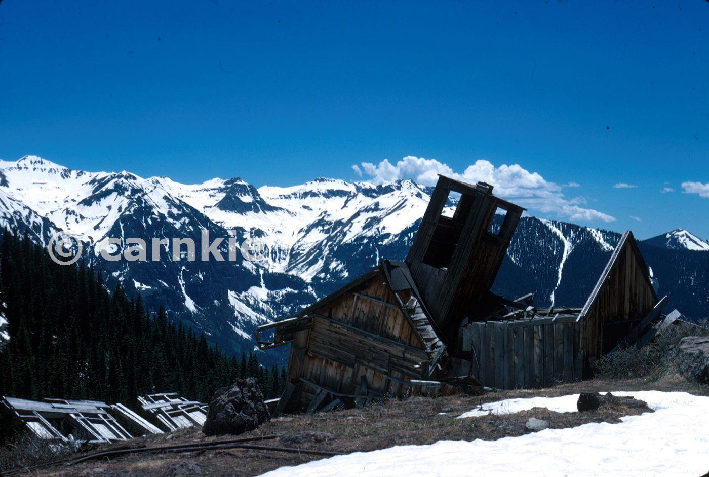 Ruins of the Liberty Bell mine, above Telluride. On February 28, 1902, a series of 3 avalanches here killed 19 men the worst avalanche disaster in Colorado history. San Juan Mountains. San Miguel County, Colorado. June 26, 1973. Courtesy U.S. Geological Survey. http://www.usgs.gov