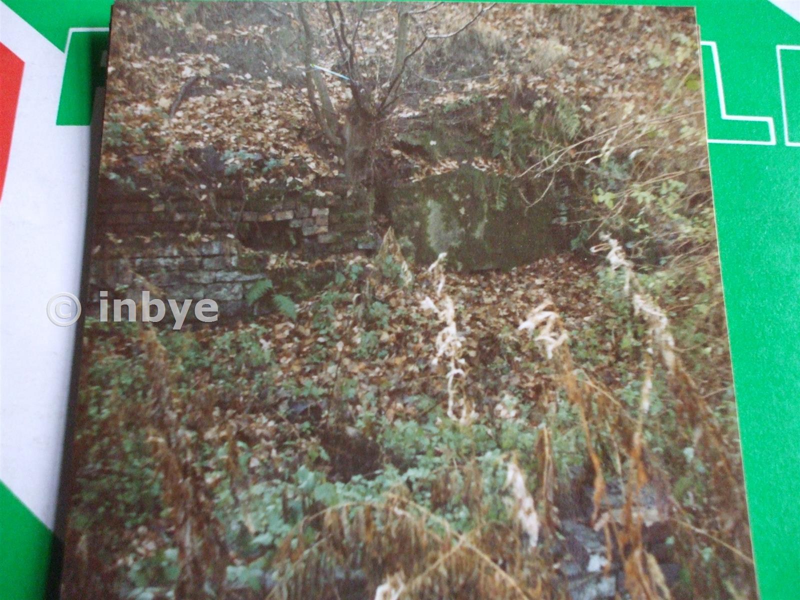 view of the bricked up drift mouth. entry was via the metal milk crate air vent, just visible at ground level, to the right of the tree.
