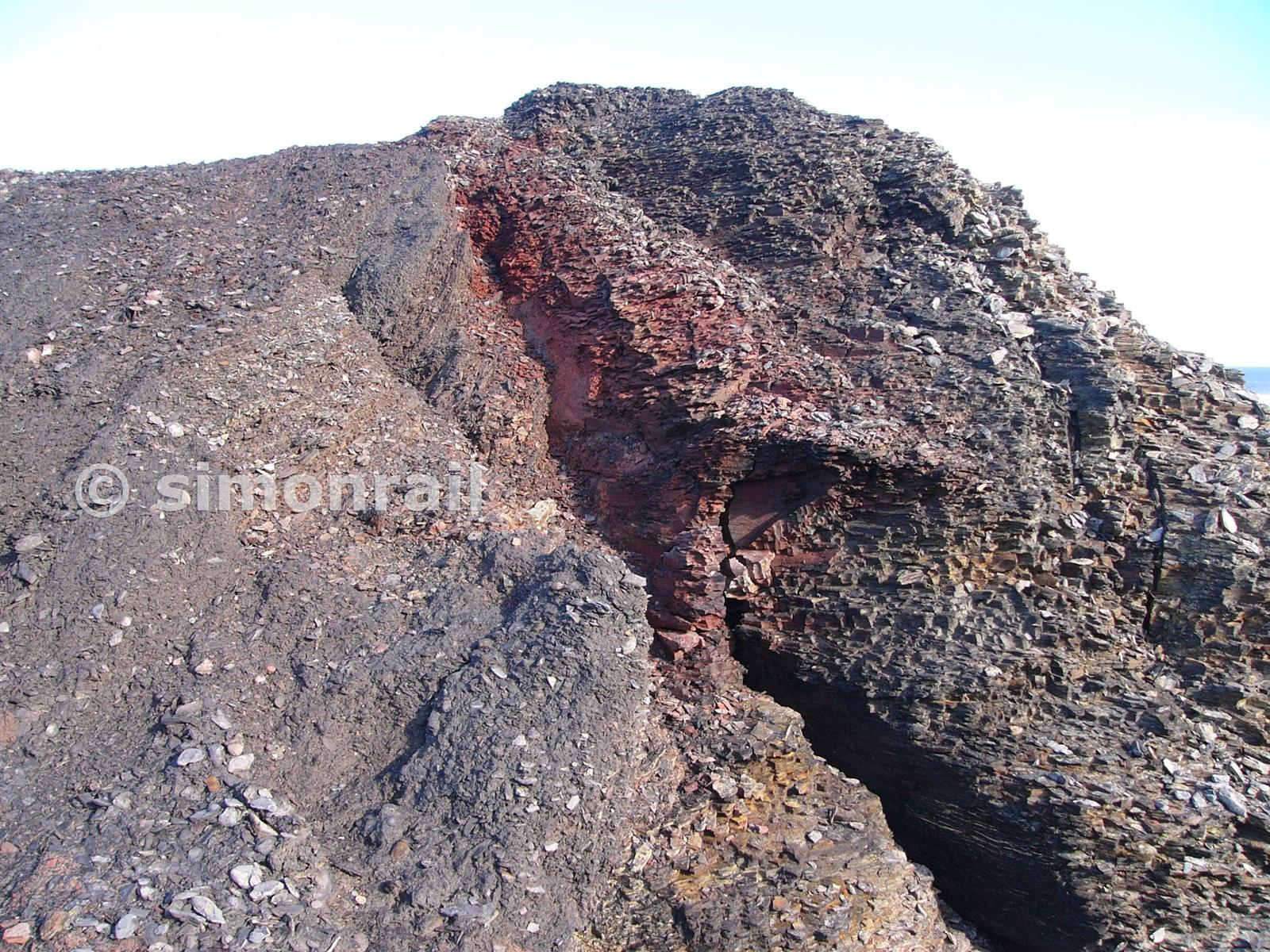 An example of the unworked shale burnt by having a calcining clamp built too close.