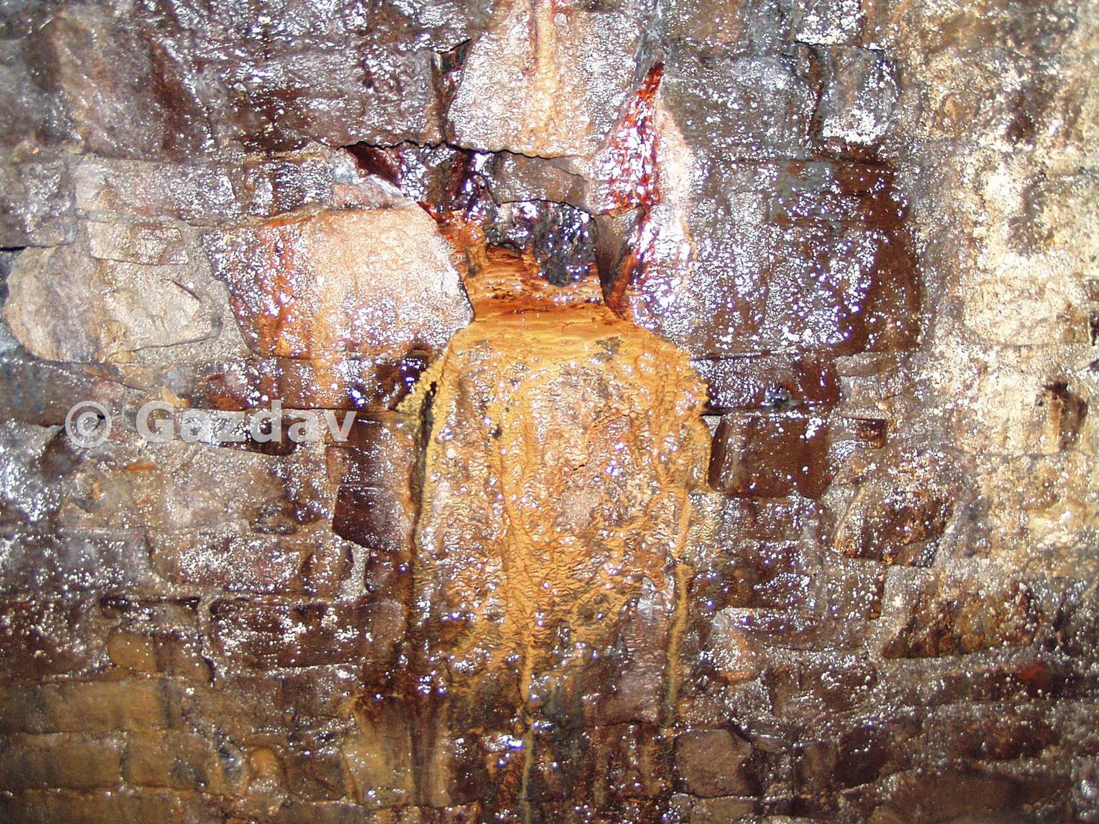 Nearer the Kingsmoor end of the tunnel are patches of iron oxide leaching through where the tunnel had to be lined due to going through soft ground.
