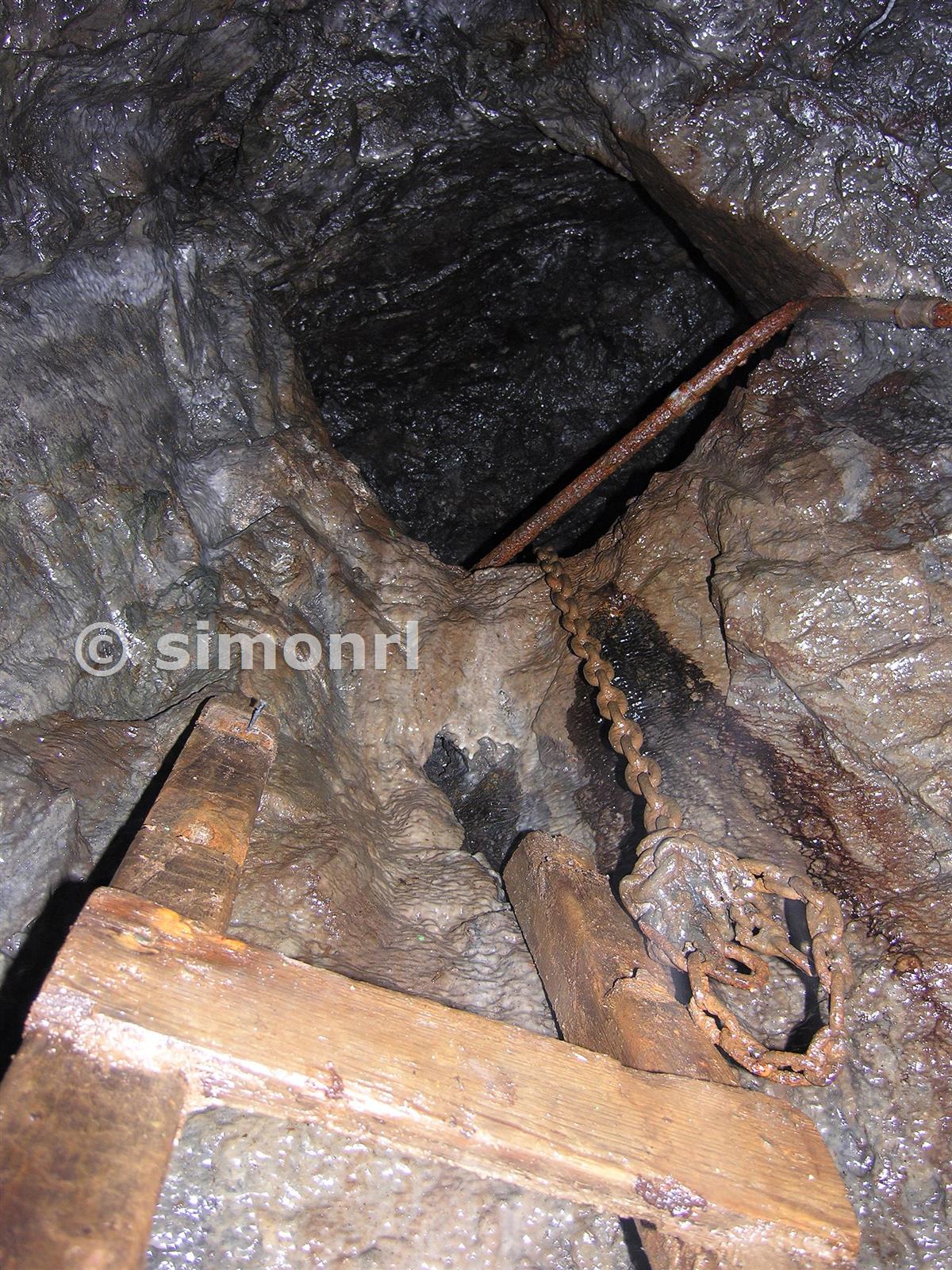 Looking up the second ladder, Benallt copper mine, Nantlle valley.