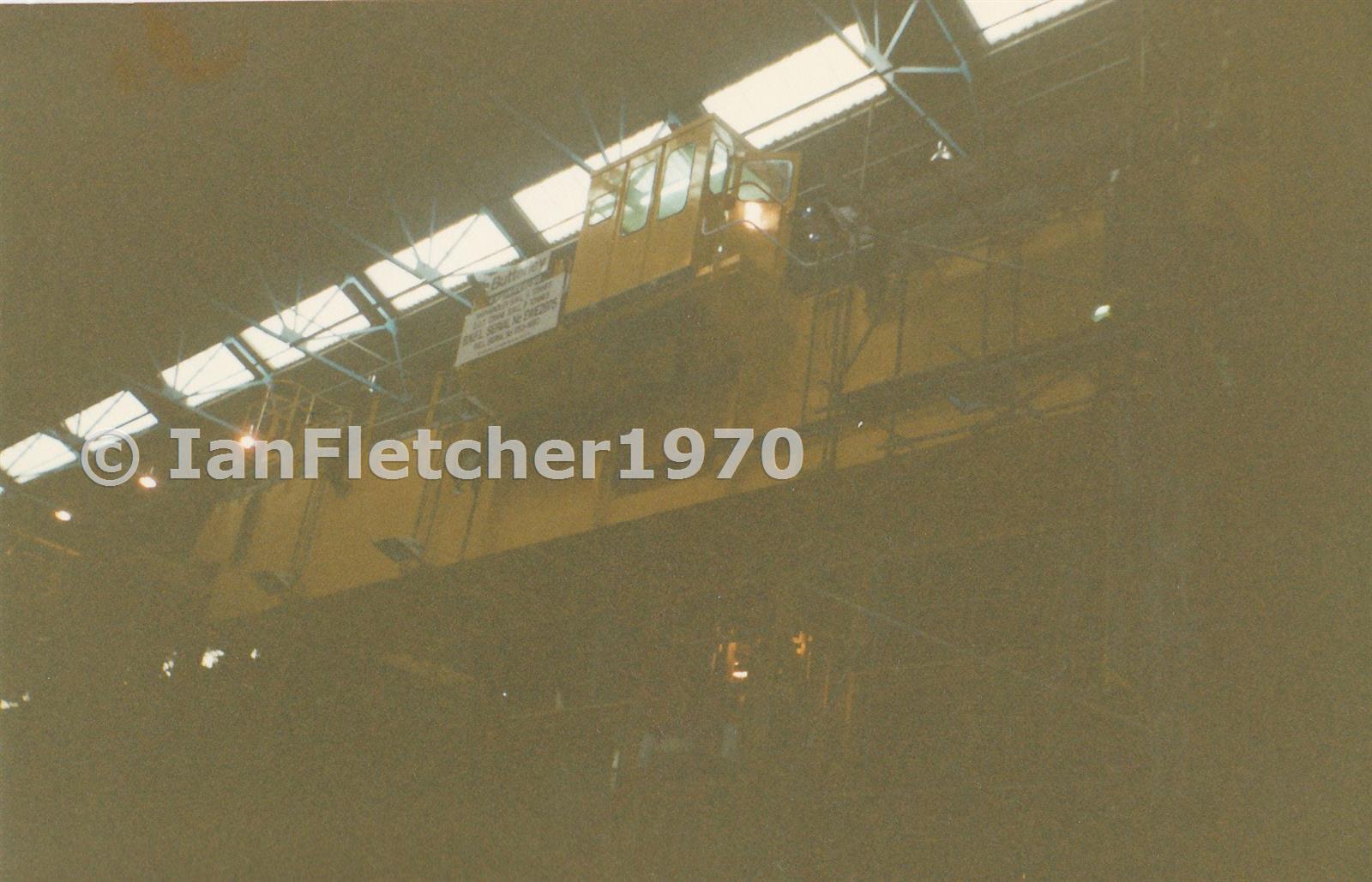 Skip handler for Sellafield B30 pond on test in main fitting/assembly shop. Photo taken on Saturday 16th June 1990 - 200 years open day.