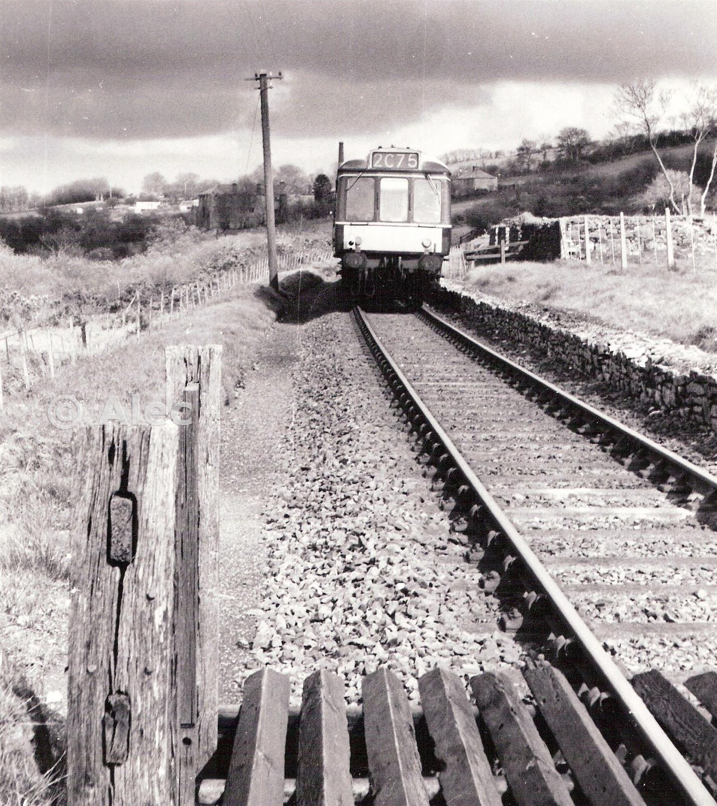 Sevenstones Halt was opened by the PDSWJR/LSWR to serve a Pleasure Gardens opened by a local entrepreneur on the site of a former brickworks associated with the mining and quarrying industries on the shoulders of Kit Hill. The brickworks had been served by a siding on the 3''6" gauge ECMR. In the background of the photograph may be seen the buildings and stack of the Greenhill Arsenic Works, which lay alongside the line in narrow and standard gauge days. Popular with Sunday School outings from Plymouth, the Pleasure Grounds- and its customers - succumbed to the Great War. Sevenstones Halt lost its raison d''etre and closed in 1917 never to reopen. This photograph was taken with my Kodak Retinette 1a camera, using self-processed Ilford HP3 bulk film, in the last week of operation of services on the Gunnislake to Callington section of the branch line.