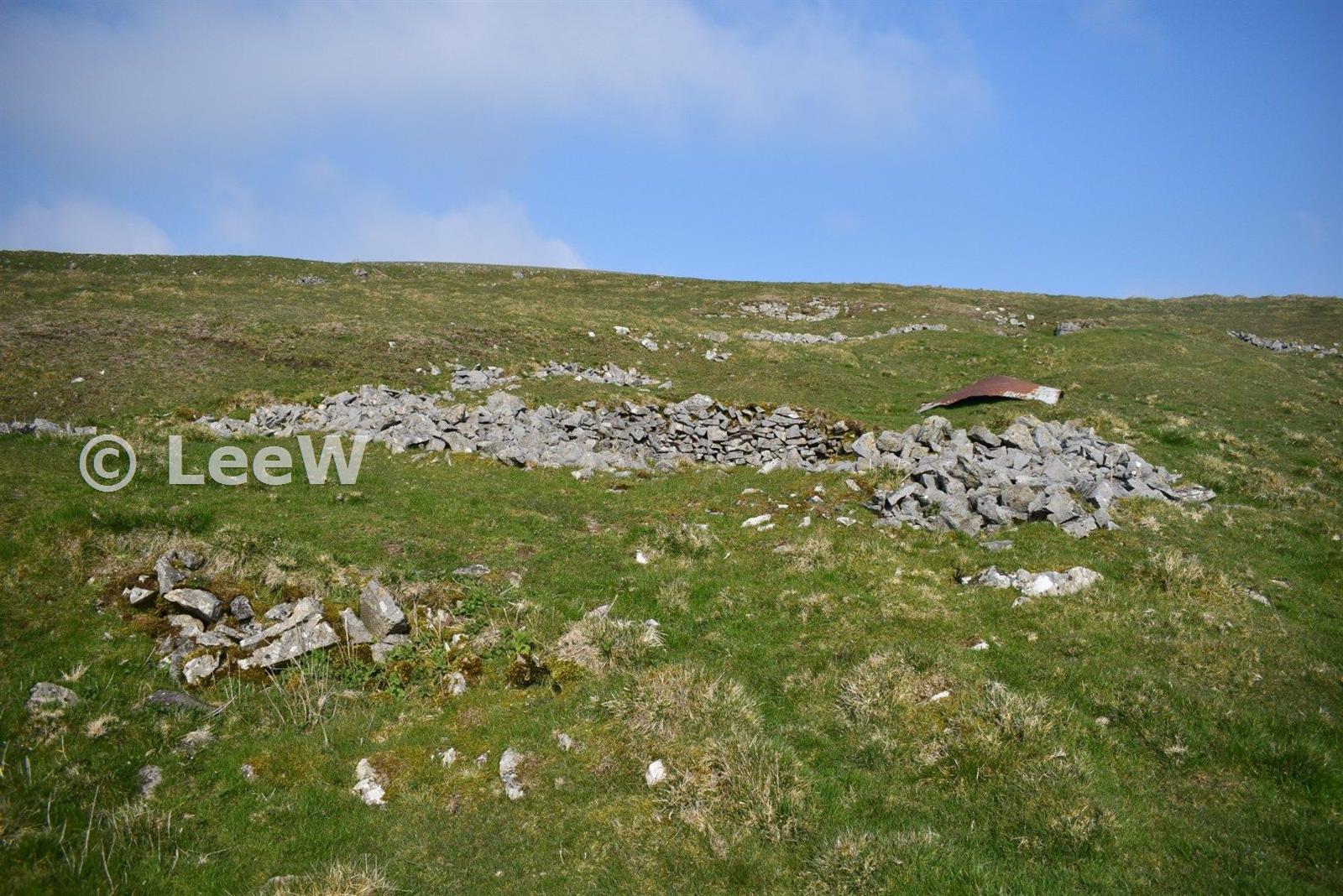 The shaft is in the ruined walls of the coe, infront is a flat area, which could be a gin platform, but this is uncertain