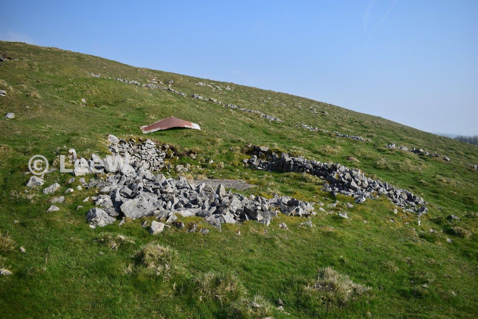 Sleeper capped shaft inside ruined walls of a coe, taken from mound to west of the shaft