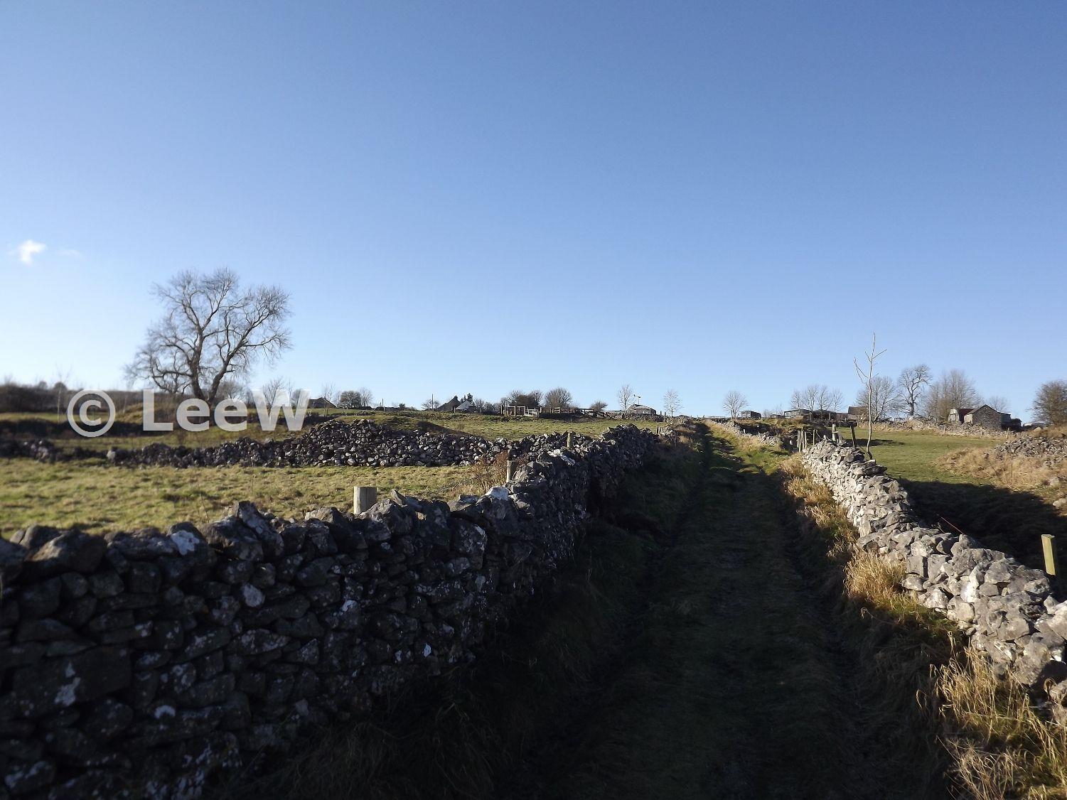View looking west up the lane with shaft mounds on both sides of the lane (December 2012)