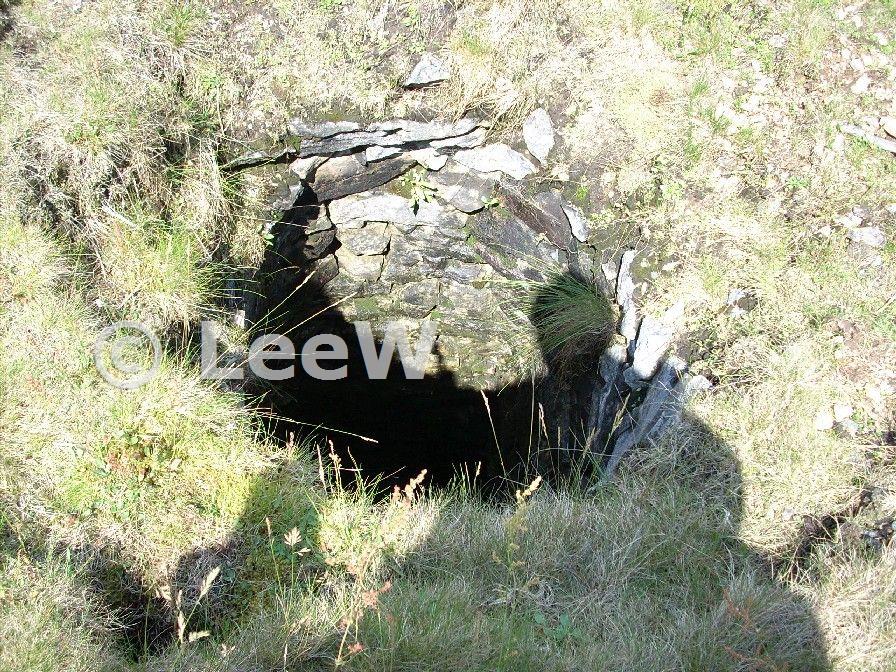 Open, fenced shaft to north of quarry mine (June 2007)