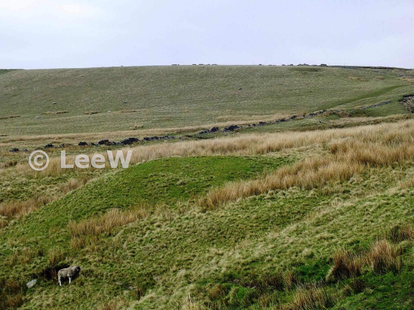 The old OS maps show a track heading north through Danethorn to the moors. At the end of the track (most not visible) was this small shaft mound and water filled hollow (SJ 99975 70165)