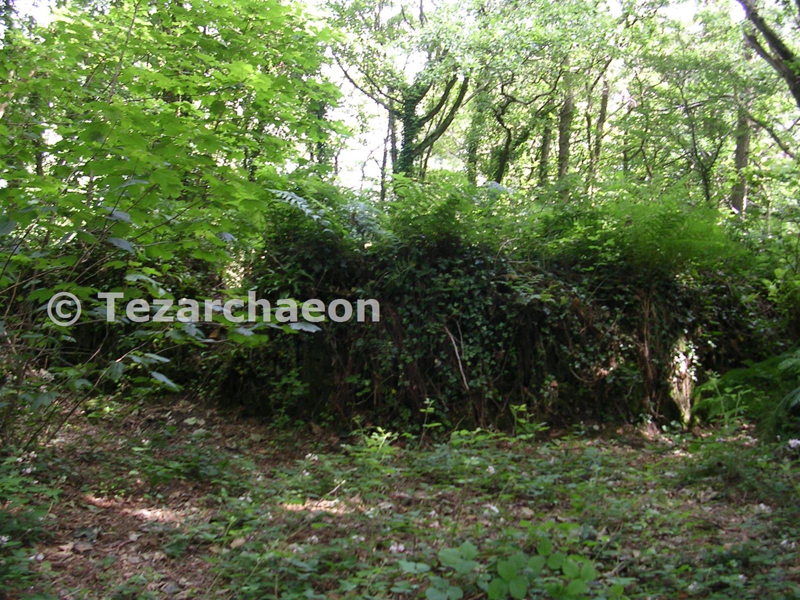 Circular stone wall surrounding a shaft by the road. There is a similar shaft on the other side of the road but this has been plugged to a considerable depth to avoid subsidence into the road.