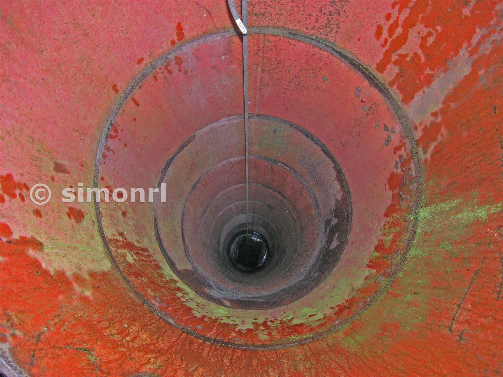 Looking down the shaft, the metal lining was installed by CATMHS in the 1980s and extends for 30' or so of the 90' descent into the mine. Ding Dong Iron Mine December 2009