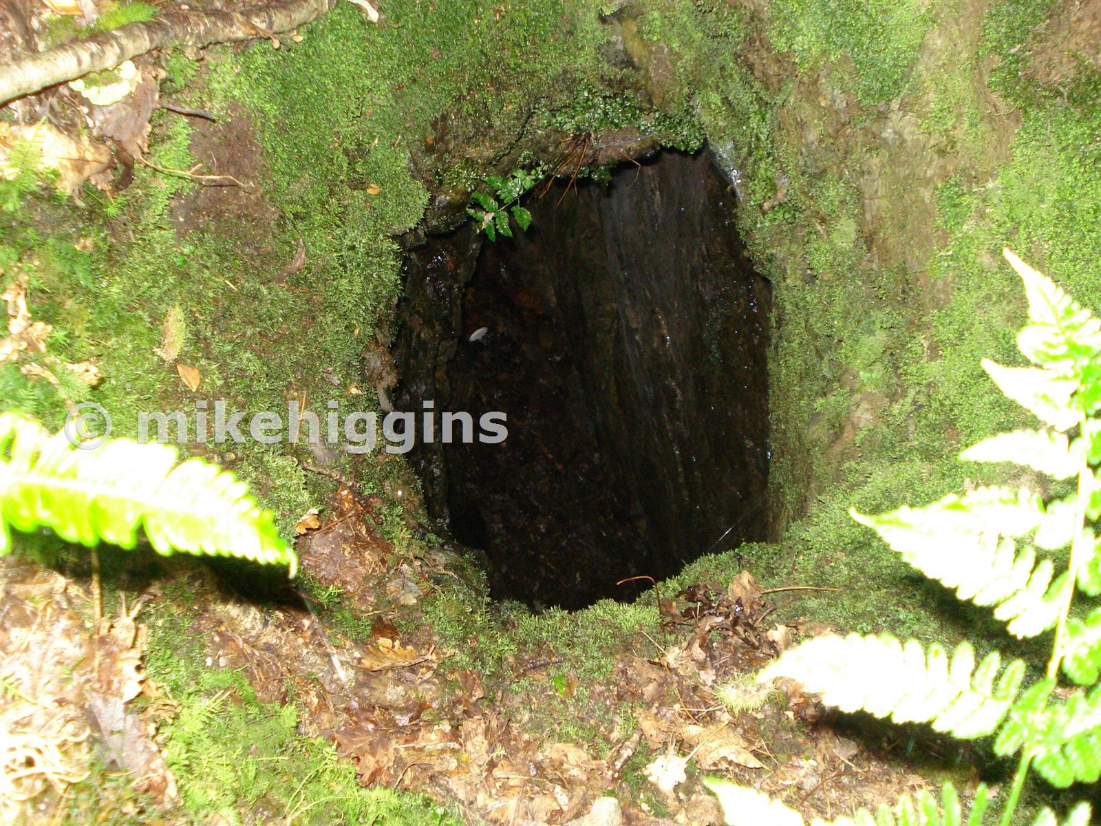 Looking down shaft into lower level that almost certainly connects with the first winze in the middle adit