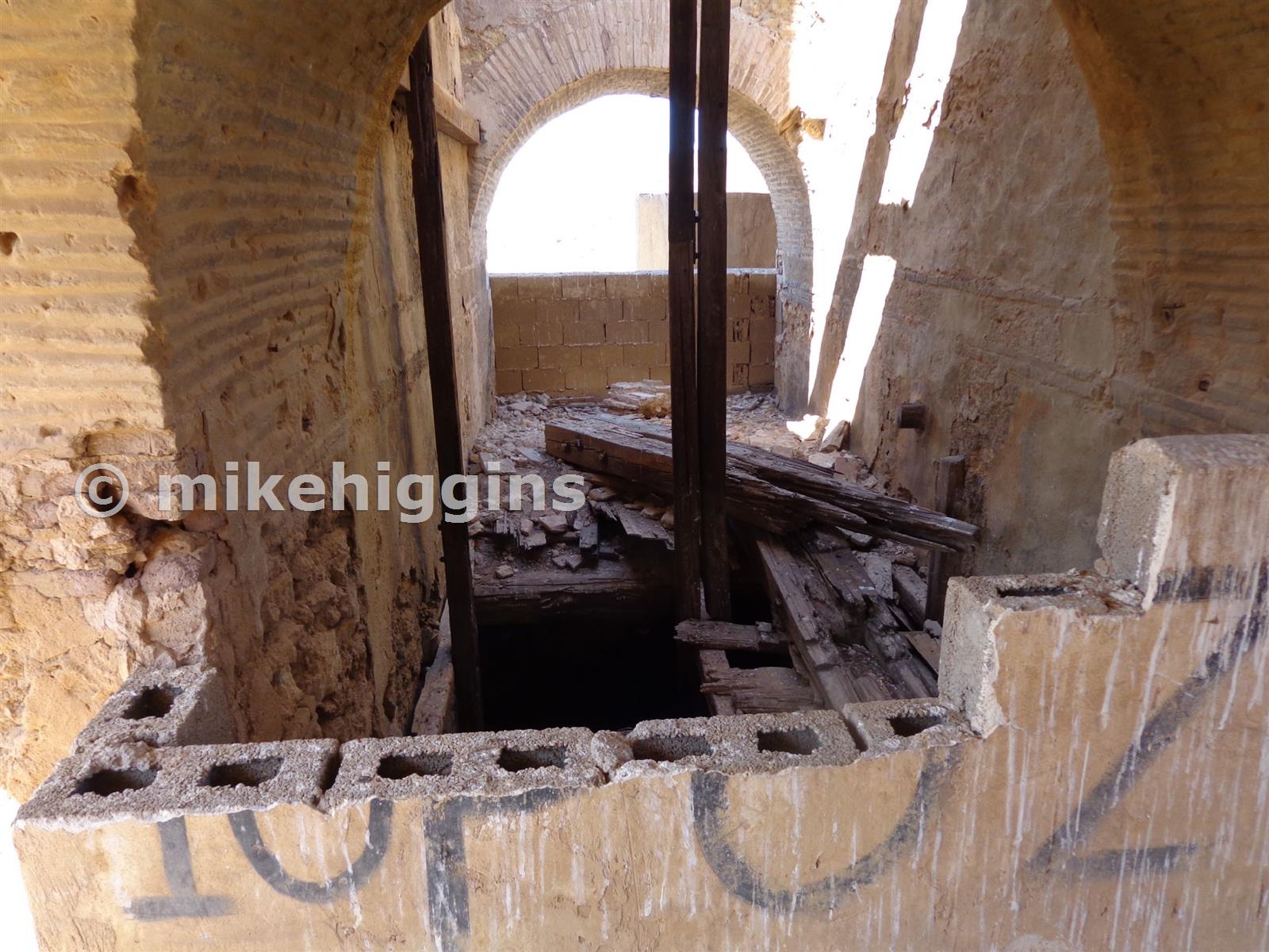 The top of the shaft viewed from the interior of the complex of buildings of which the masonry headframe forms part