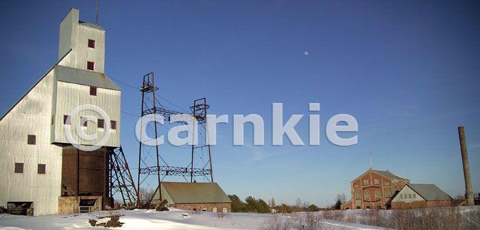 The #2 Shafthouse (left) and the Hoist House (right) are the w:Quincy Mine's main features. The steam hoist, still located inside, is the largest steam hoist in the world.
