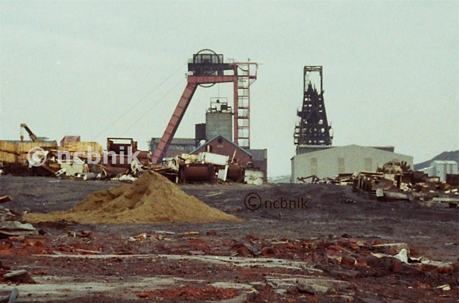 Almost finished: nearly everything gone apart from headgears, winders and the grey ''wendy house'' to the right, which I can''t remember what it housed; at first I thought it was the ''new'' boiler house but, thinking about it, I think this was smaller & at right angles. So, if you can remember better than me, please let me know and I''ll amend this entry.