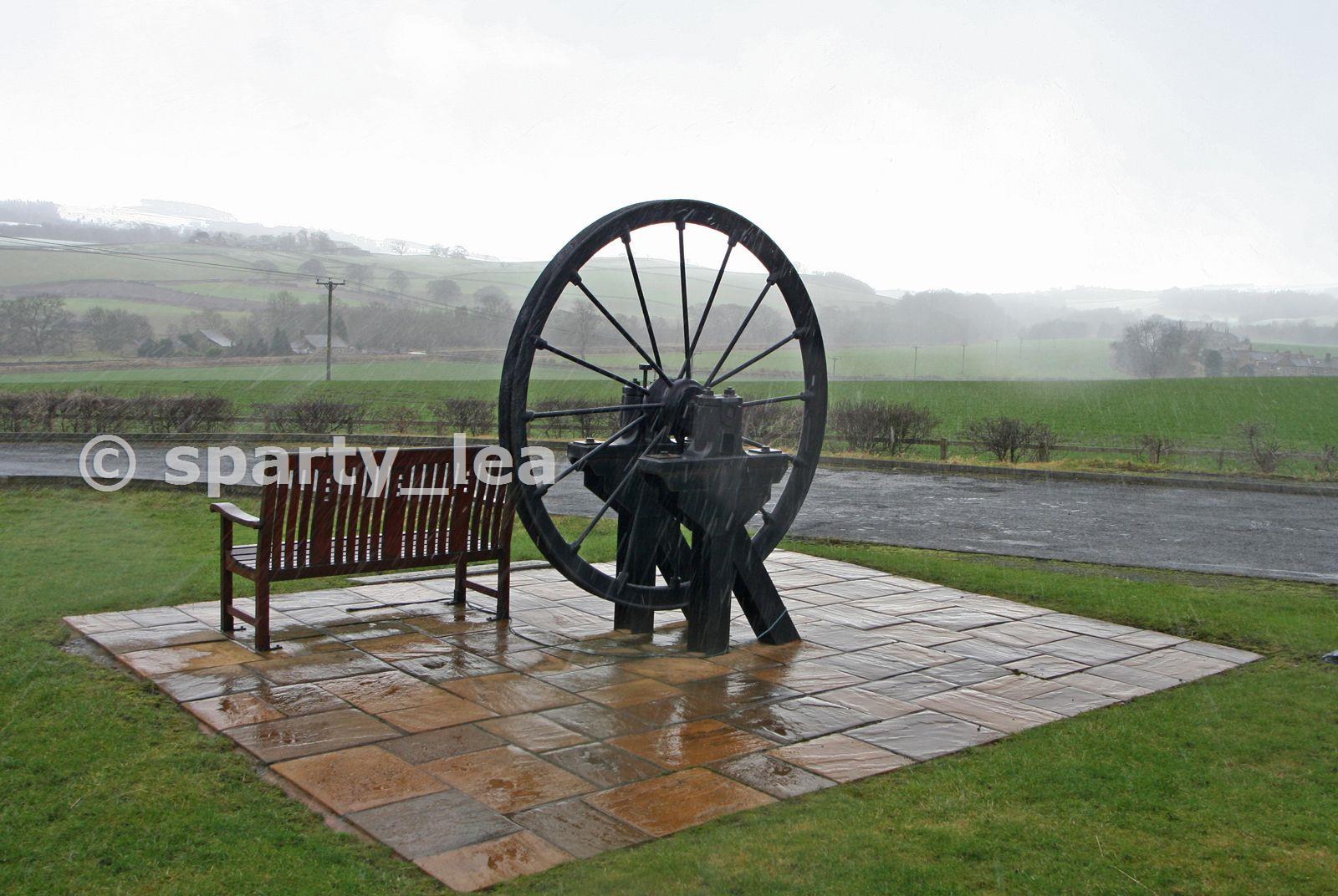 The sheave wheel from Ellen Shaft was saved from scrap by Billy Nichol and stored for many years. It was restored and fitted with its stand in the workshops at Barrasford Quarry and now stands as a memorial in the village of Fourstones.
