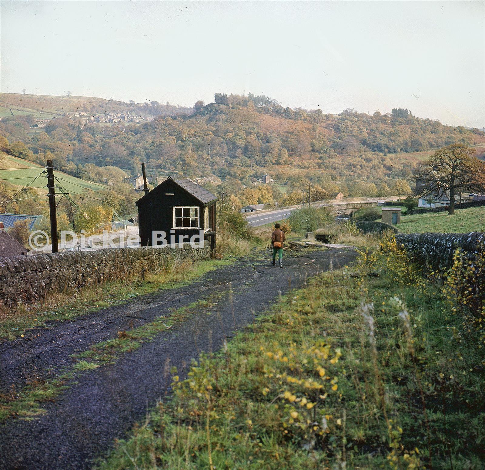 A view down to High Peak junction after the rails had been removed. The hut was for the pointsman, controlling the catch pit, into which runaway wagons would be directed.