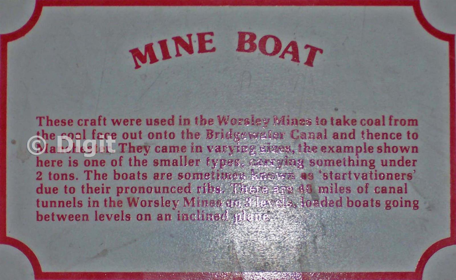 This is the short info plaque for the Worsley Mine Boat. There was also a longer write up with a couple of photos if I remember correctly.