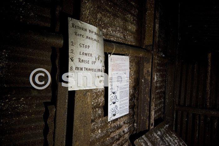 Haulage and health and safety signs in one of the adits.