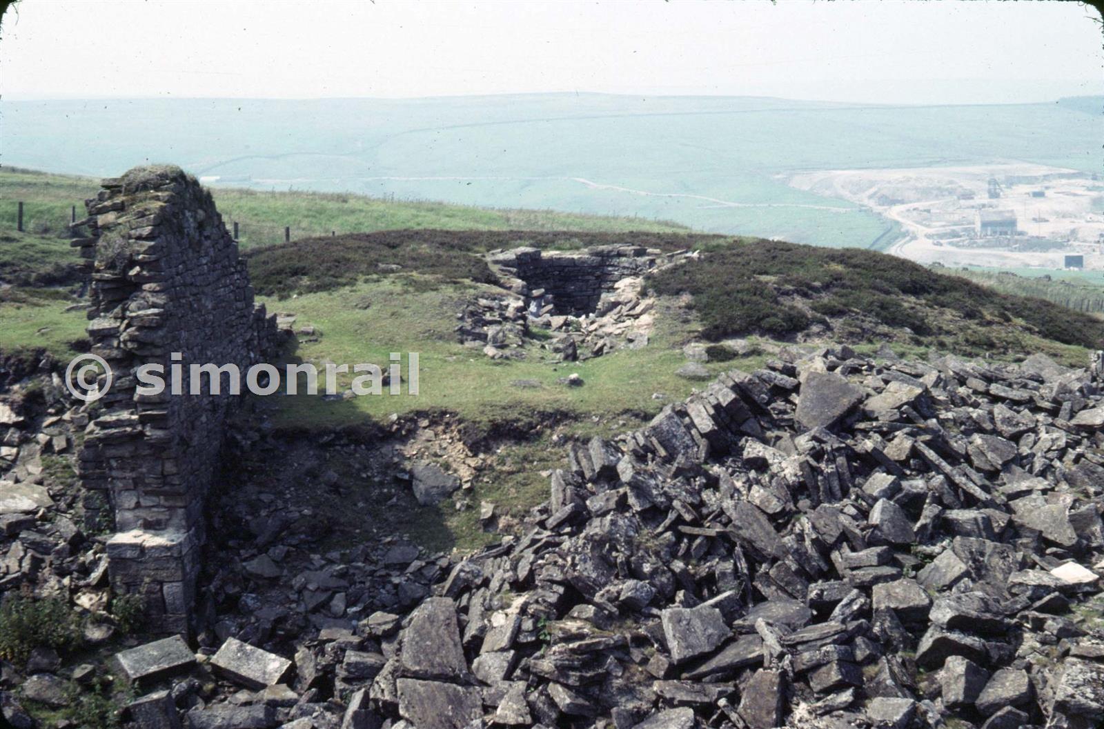 Platform for capstan for raising and lowering the wooden pumping rods in the shaft (collapsed, foreground).