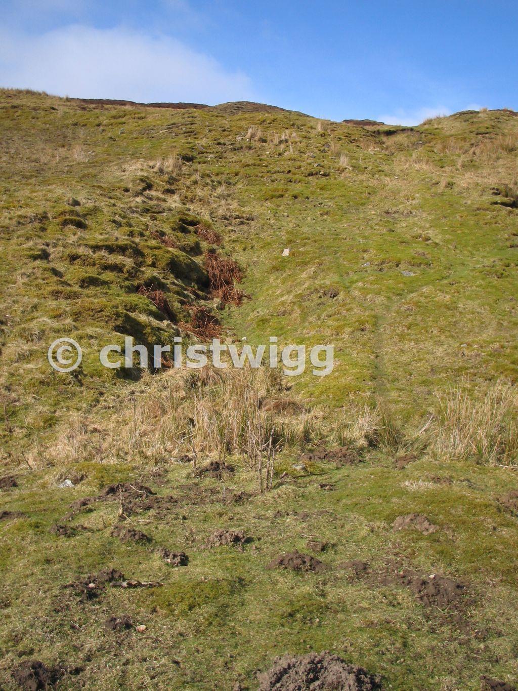 Depressions in the hillside are all that remains of the levels
