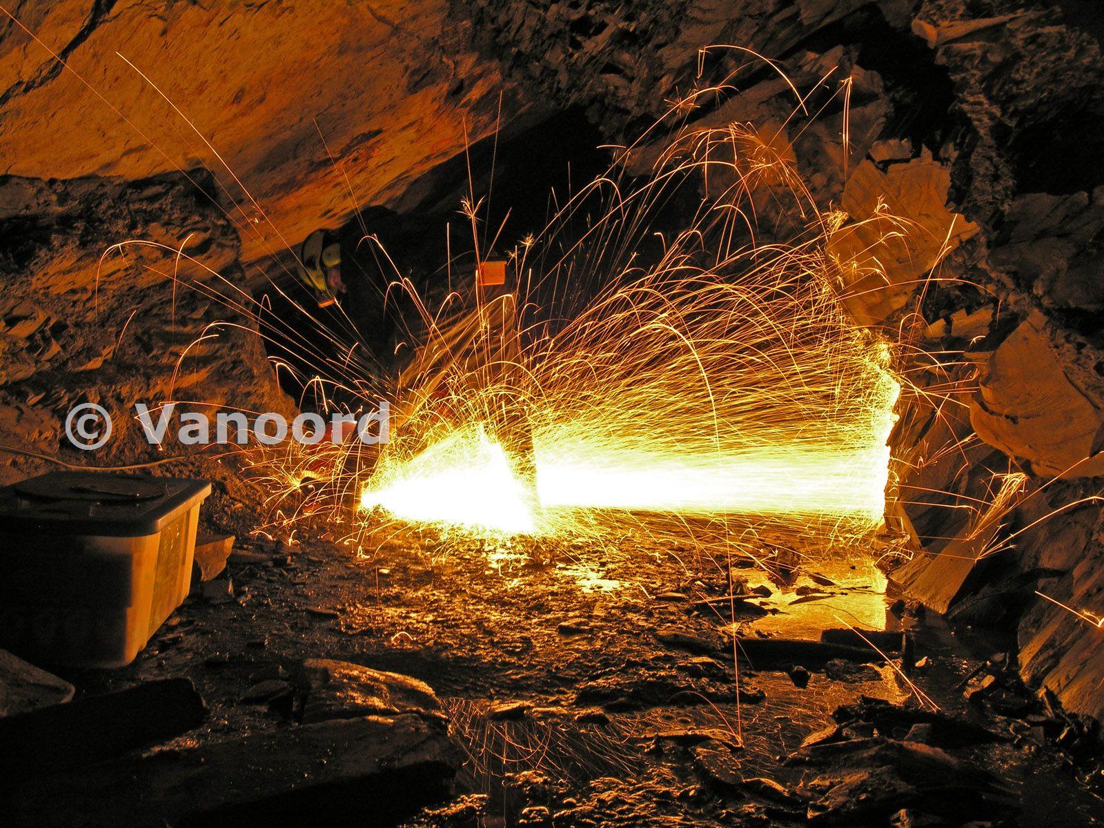 Simply cutting rebar into shorter lengths to be used as supports for steps. Autumn 2008