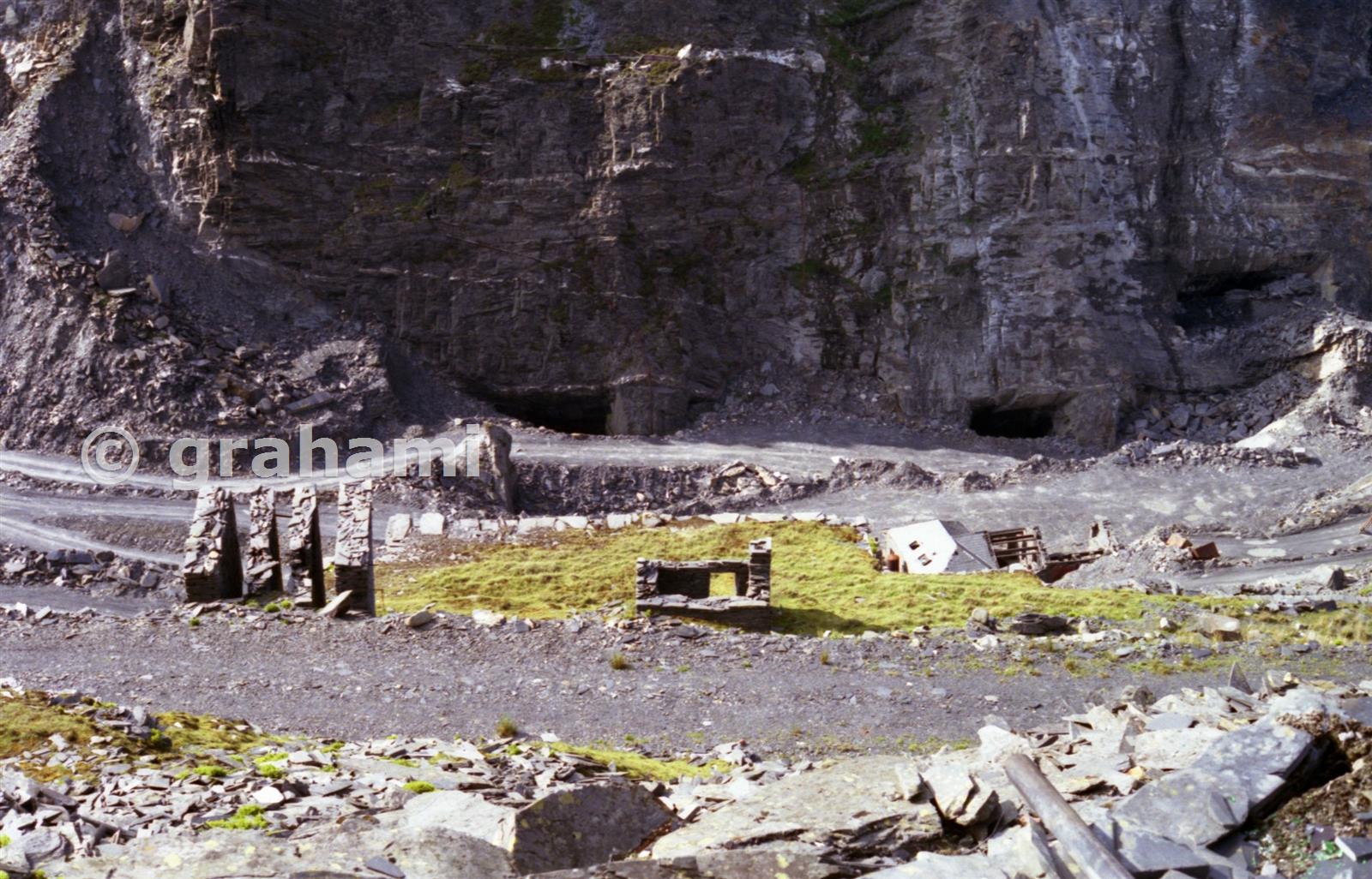 Same view, different angle. The nearer building is the drumhouse of the 1856 Welsh Slate Co. water balance, while beyond it several hundered feet below is the HIK building.