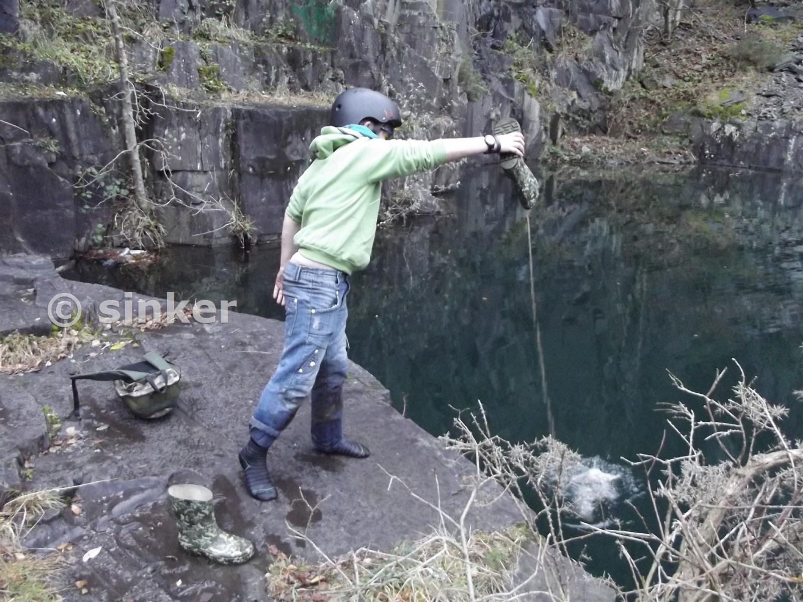 The ceremonial "Emptying Of The Wellies". Lagoon area, Snowdon Pit, Glynrhonwy Isaf.
