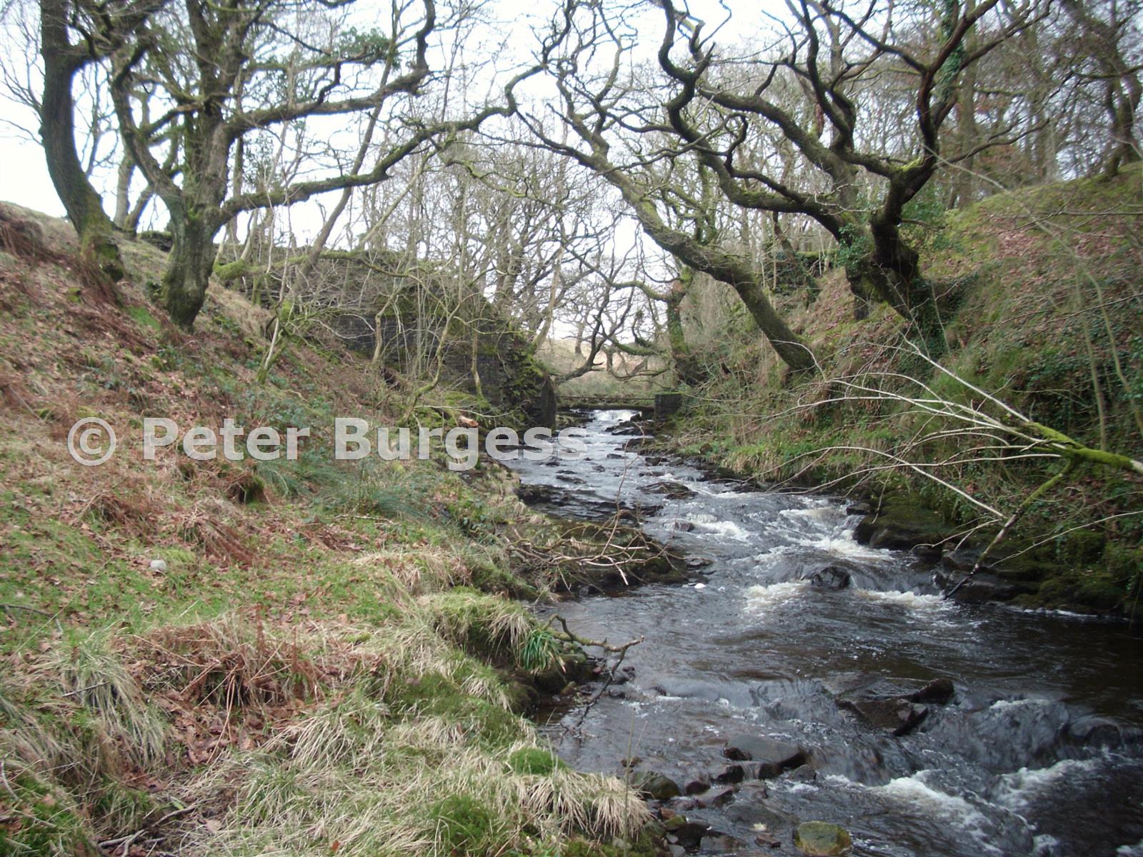 The tramroad crossed the Nant Llech on a substantial bridge. The northern abutment survives.