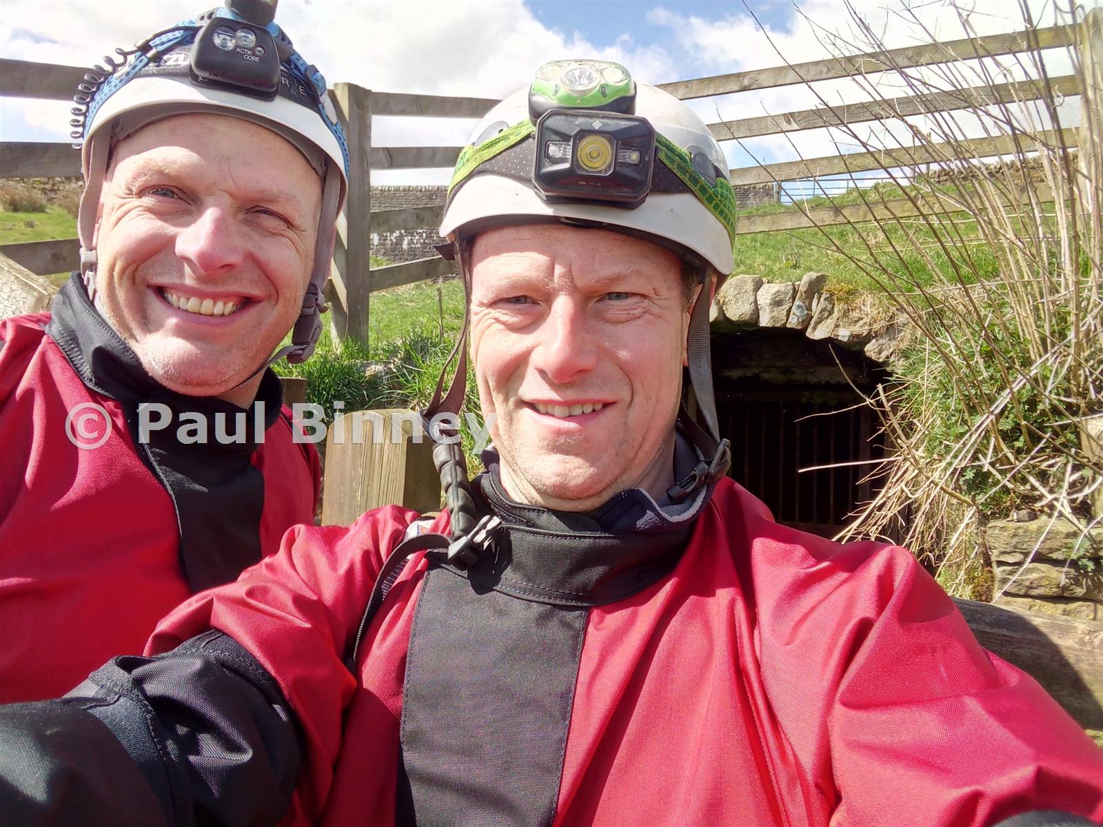Andy Charlton and I (Paul Edward Binney) outside of Skears Firestone level testing out our brand new AV over suits from Tony at Starless river.They didn''t stay clean for long.