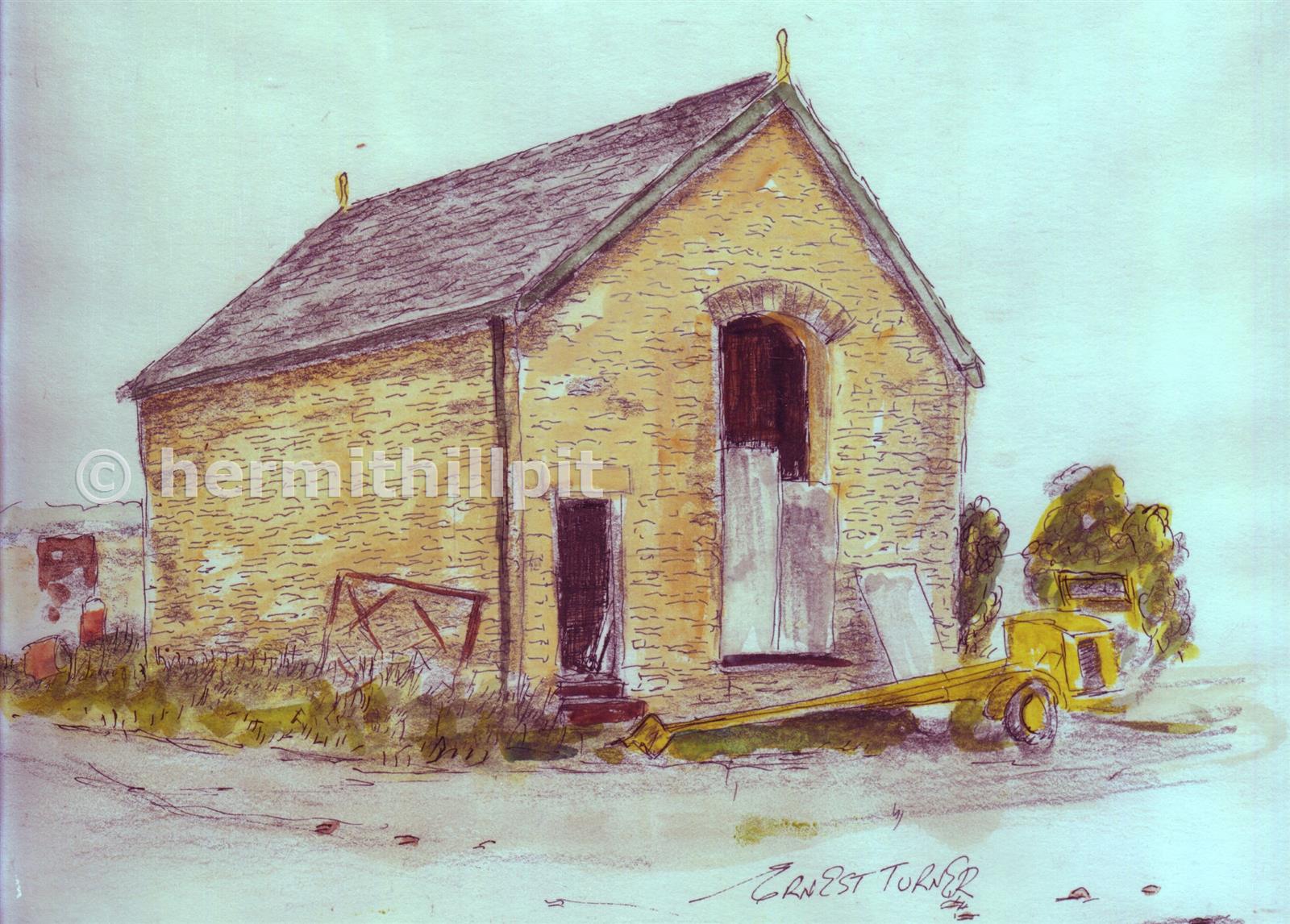 Sketch of Old Engine House, Hermit Hill Colliery. Sketch by local artist Ernest Turner
