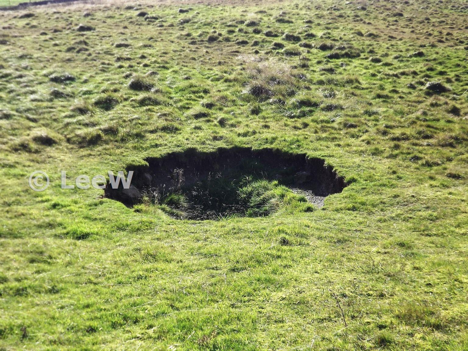 This small circular collapse is next to the square concrete capped shaft. It looks fairly recent and could be a second shaft - possibly climbing shaft. Oct 2011