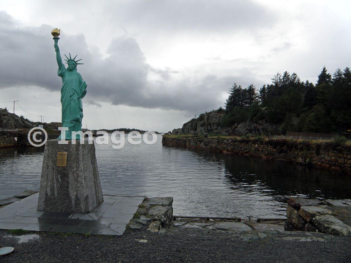 A small version of the Statue of Liberty stands on the dockside at Visnes in recognition of the fact that copper from Visnes was used to make thge original statue.