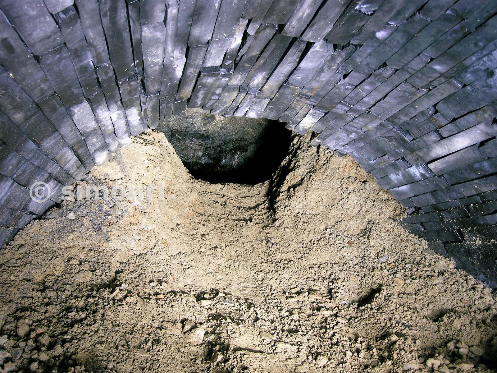 Partially cleared / widened - looking into the mine from the smoke flue blockage. Now cleared to make it a more viable emergency exit.
