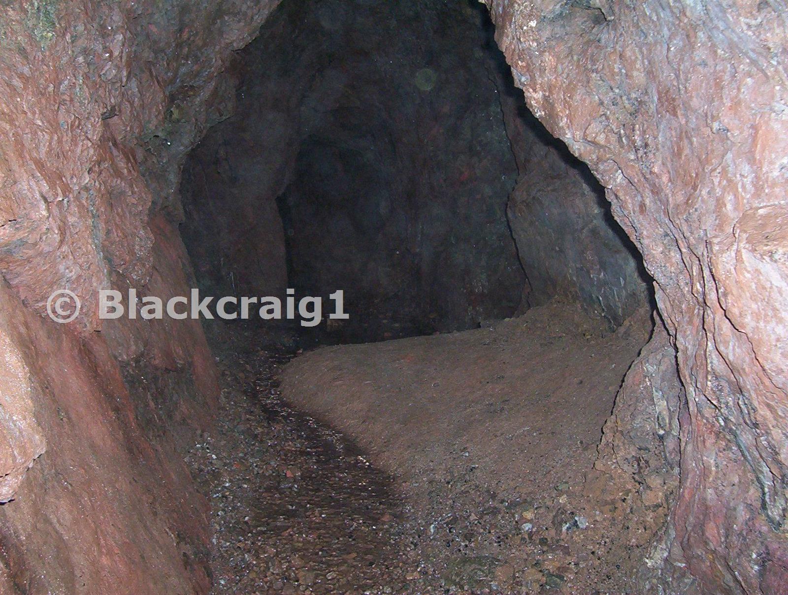 This area is where a smoky quartz vein is seen, on the left as you head into the far section of level. A trial has been carried out before there on the left, but only goes a few yards.