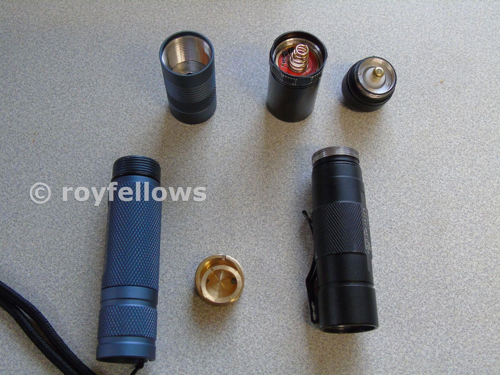On the left is the Convoy S2 bare host from Fasttech. On the right a hash up of various bits. Its a bbost driver pushing a Cree XHP 35 to give 1700 lumens from a small torch