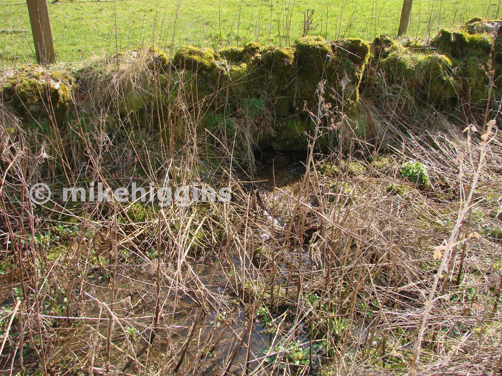 Rath Rake Sough tail is a low opening in the wall at the side of Gratton Dale. Crosses the field beyond as a cut and cover bolt. Water can be heard flowing underground at the point where it passes beneath the wall on the far side of the field.