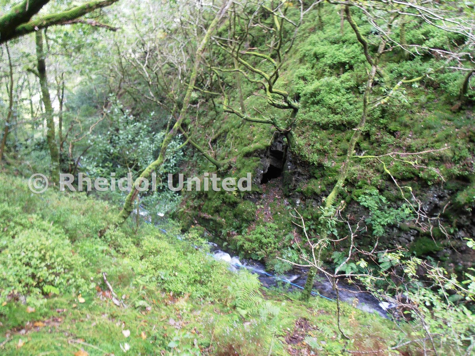 A large trial portal down by the stream leads into a small, bare cavern.