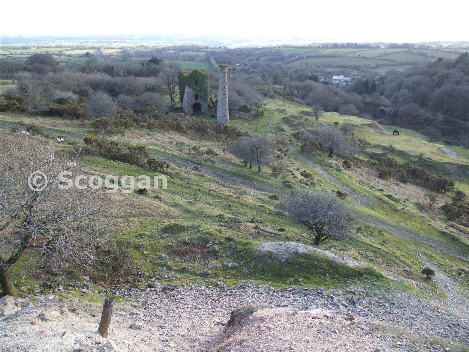Jopes Shaft Engine House and Stack.Enbankment of the Liskeard acn Caradon Railway Tokenbury branch 03-03-12